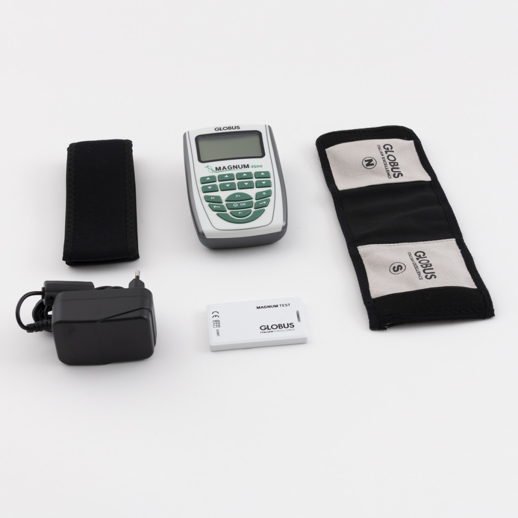Magnum 2500 vezérlőegység • 1× flexibilis mágnestekercs (30×10 cm) • 1× tépőzáras rögzítő pánt • hálózati tápegység • hordtáska •