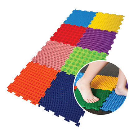 A talpizmok erősödéséhez, ezáltal a megfelelő boltozat kialakulásához fontos az egyenetlen talajon járás, de ezt sajnos városi körülmények között nehéz megvalósítani, főleg a téli időszakban. Ezen tud segíteni a szenzoros masszázsszőnyeg, ami otthonába csempészi a kavics, a fű, a göröngyös talaj érzetét, így gyermeke bármikor úgy érezheti, mintha a szabadban járkálna. A lapokon lévő mintázat ingerli, és összehúzódásra készteti a talpizmokat, erősíti a boka körüli izmokat, ezáltal fejleszti az alsó végtag stabilitását, valamint korrigálja a rossz testtartást. Vidám színei fejlesztik a színérzékelést, kedvezően hat gyermeke hangulatára. A lapok összeillesztésével és szétszedésével fejlődik gyermeke szem-kéz koordinációja, színérzékelése és kombinációs készsége, javul a manipulációja.